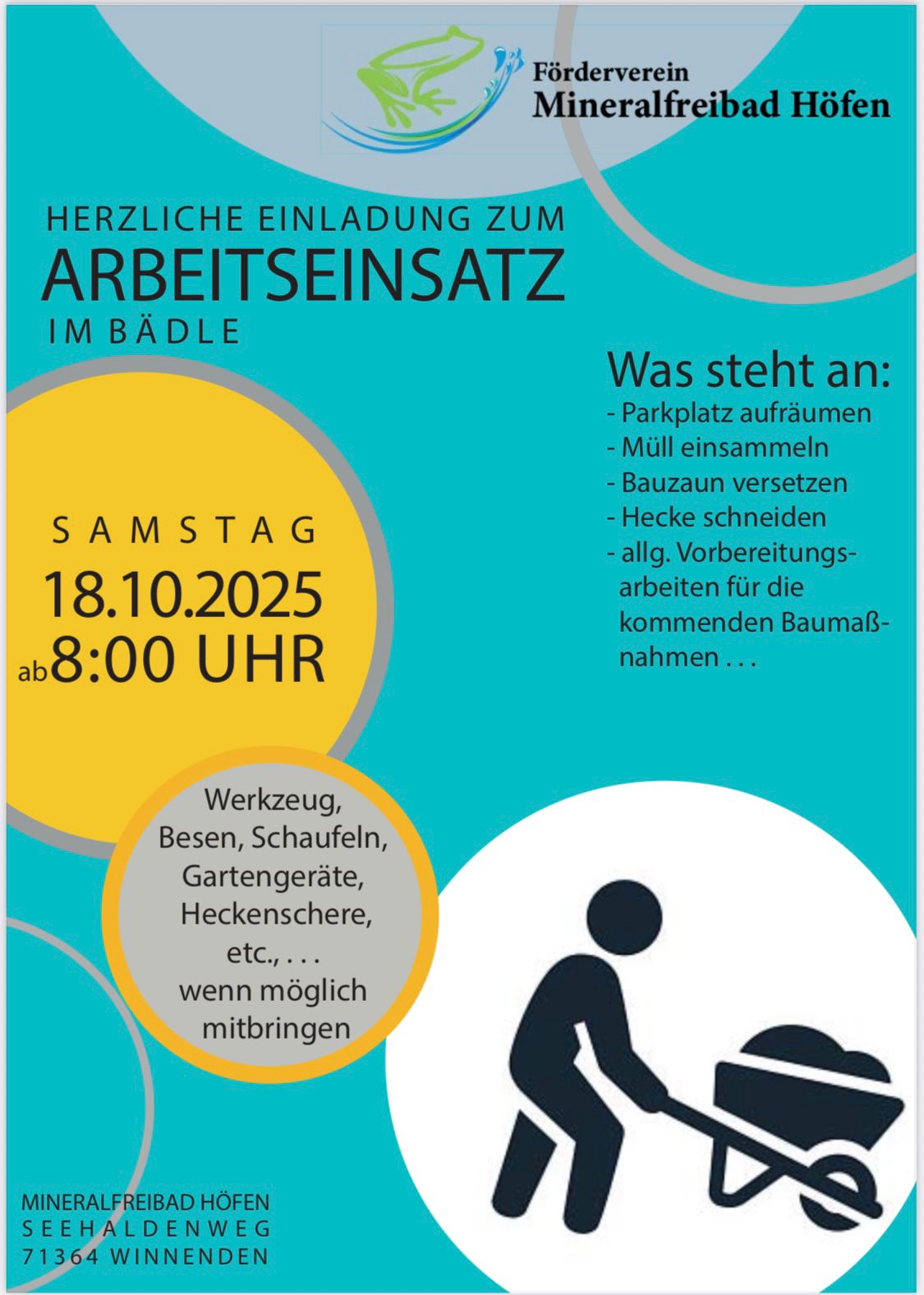 Zusammen mit der „WE ARE HÖFI – Bürgerinitiative Bädle Höfen“ wollen wir gemeinsam zu weiteren Spenden aufrufen und freuen uns auf Gespräche mit euch zum Erhalt unseres Bädles.